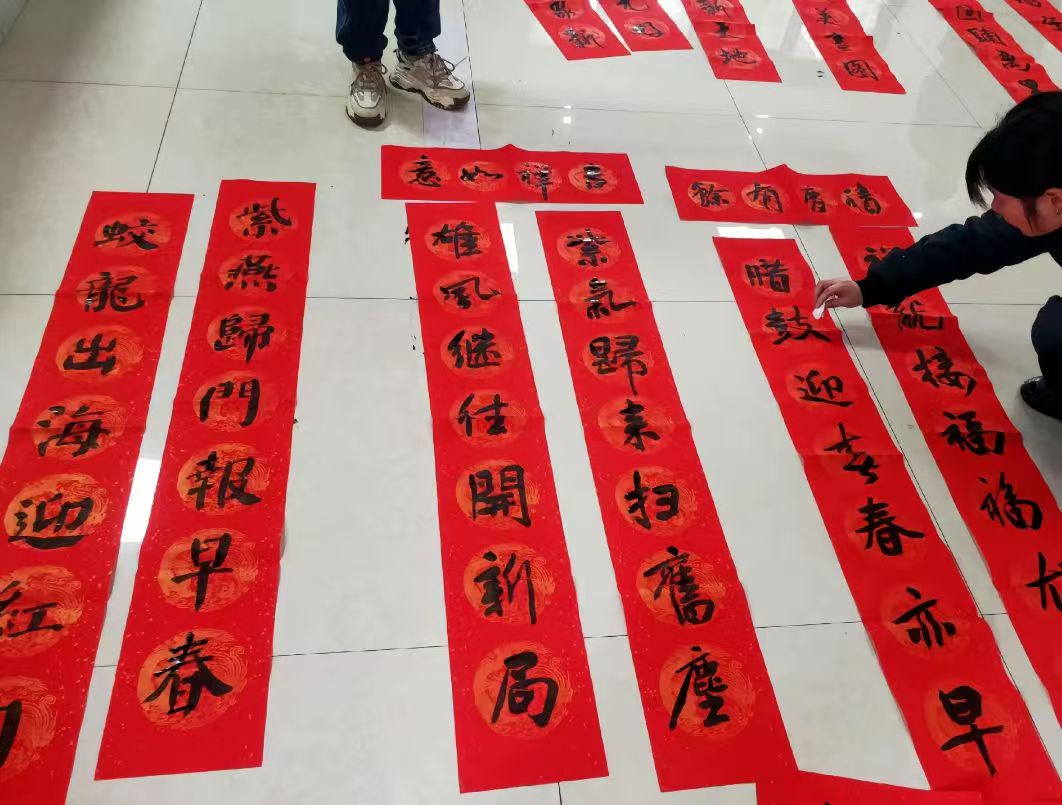 隨著活動(dòng)的進(jìn)行,一幅幅寫好的春聯(lián)擺滿了桌子,整個(gè)活動(dòng)現(xiàn)場(chǎng)彌漫著濃郁的墨香和喜慶的氣息。居民們手捧著自己心儀的春聯(lián),臉上洋溢著幸福的笑容。他們紛紛表示,這些手寫的春聯(lián)比市場(chǎng)上購(gòu)買的更有意義,不僅蘊(yùn)含著志愿者們的美好祝福,還承載著中華傳統(tǒng)文化的深厚底蘊(yùn)。