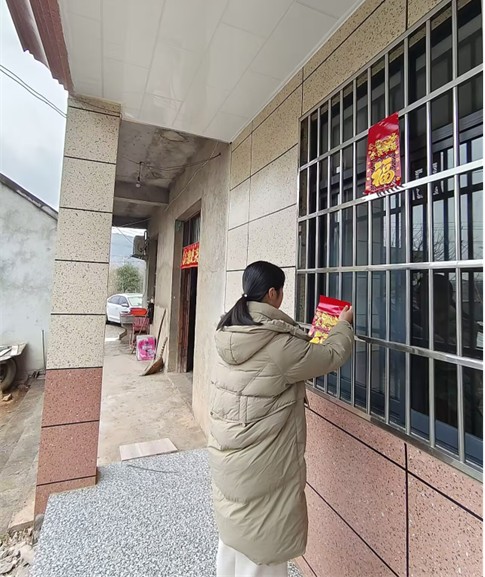 (周璇在小區(qū)貼春聯(lián) 周璇攝)
