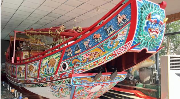 為了進(jìn)一步了解疍民的民俗信仰,實(shí)踐隊(duì)成員馬不停蹄,又前往當(dāng)?shù)氐膹B港海洋文化展示廳。民俗信仰是疍民文化的核心組成部分。送王船是疍民最為重要的祭祀儀式,每三或四年在秋季東北季風(fēng)起時(shí)舉行。這一儀式融合了造船、建筑、雕刻、彩繪等多項(xiàng)閩南傳統(tǒng)手工技藝,從迎王時(shí)的莊重祈愿,到造王船時(shí)的精心籌備,再到豎燈篙招徠孤魂、普度眾生、祀王的虔誠(chéng)肅穆,以及踩街游行的熱鬧歡騰,最后送王、化吉,王船駛向大海,整個(gè)過(guò)程充滿儀式感,承載著疍民禳災(zāi)祈安的美好愿望。
