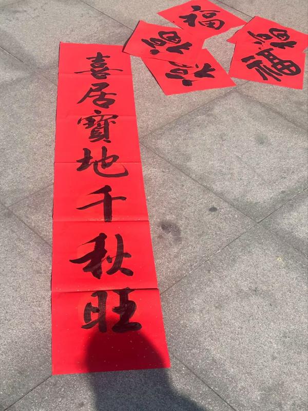 在貼春聯的過程中,學生們充分發揮創意和想象力,親手將一副副寓意吉祥、祝福滿滿的新春對聯貼在家家戶戶的大門上。他們通過這種傳統的方式,為社區營造出濃厚的節日氛圍,同時也傳承了中華民族的傳統文化。