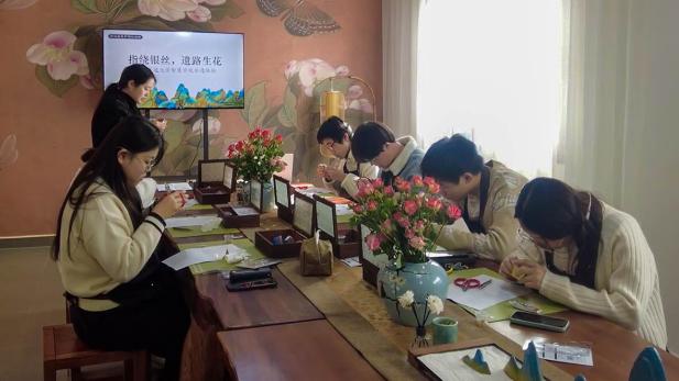 圖為實(shí)踐隊(duì)在老師帶領(lǐng)下進(jìn)一步了解成都銀花絲和動手實(shí)踐 通訊員 姜雨辰供圖
