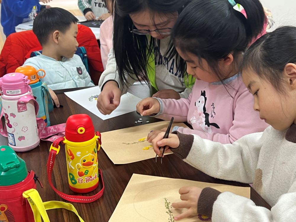 午后三時,趣味盎然的“嶺南押花”課程開始了。嶺南押花,這門古老而又充滿詩意的藝術(shù),承載著嶺南大地的風(fēng)土人情與自然之美。支教隊員先從押花的歷史講起,之后講解了押花的具體步驟。接著,孩子們開始發(fā)揮天馬行空的想象力,創(chuàng)作押花。有的孩子拼成了一朵盛開的花,花瓣上還帶著露珠般的膠水,顯得格外生動;有的孩子則用樹葉拼出了小動物的形狀,栩栩如生。每一個作品都凝聚著孩子們的心血,也承載著他們對美的追求。支教隊員用青春創(chuàng)意喚醒古老技藝,仿佛黃河水澆灌著岸邊的紅柳,既守護著根系,又孕育著新芽。