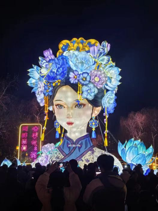 圖為大明湖畔的“夏雨荷”花燈
