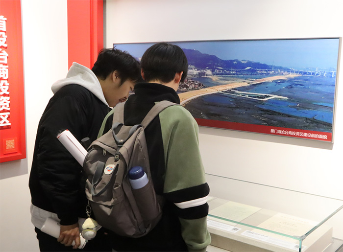 實踐隊師生們仔細觀看了展出的一幅幅珍貴的歷史影像與實物展品,猶如跨越時空,親身經歷了廈門從一個小漁村到如今的高素質的創業之城和高顏值的生態花園之城的波瀾壯闊歷程,感悟了“敢闖敢試、敢為人先、埋頭苦干”的特區精神。