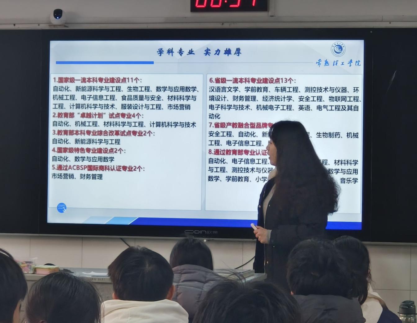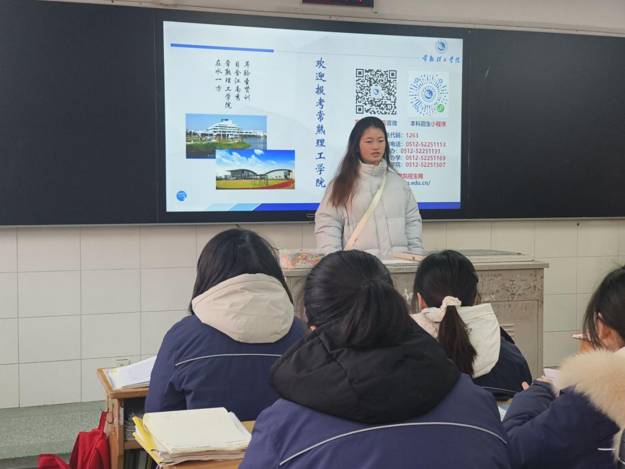 在宣傳活動(dòng)進(jìn)行期間,實(shí)踐團(tuán)的成員們來(lái)到了高三物理組的班級(jí)。他們向?qū)W生發(fā)放了精心準(zhǔn)備的常熟理工學(xué)院宣傳單,并通過(guò)詳細(xì)講解宣傳PPT、播放宣傳片等方式,讓學(xué)生全面了解了常熟理工學(xué)院的師資力量、學(xué)科專業(yè)、校園環(huán)境以及近年來(lái)在各類競(jìng)賽中取得的優(yōu)異成績(jī)等。同時(shí),他們還結(jié)合自己的大學(xué)學(xué)習(xí)生活經(jīng)歷,分享了高中學(xué)習(xí)的方法和經(jīng)驗(yàn),鼓勵(lì)學(xué)生們珍惜時(shí)光,努力學(xué)習(xí),為實(shí)現(xiàn)自己的夢(mèng)想而奮斗。