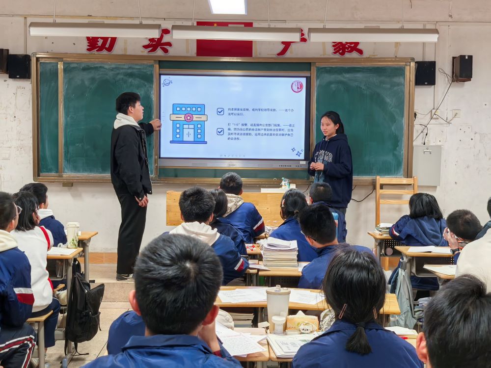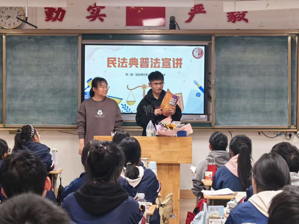 接著,團隊宣講員柯芷瀅、汪偉釗以“民法典與生活”為主題,通過“繼承遺產(chǎn)、撫養(yǎng)權(quán)”“校園暴力、鄰里關(guān)系”等典型案例,深入解析《民法典》婚姻編、侵權(quán)編的核心內(nèi)容。同學(xué)們聚精會神地聽著,紛紛舉手分享身邊的“侵權(quán)”小故事,在交流中隊員們感知到目前高中生對于“維權(quán)意識”方面仍然存在盲區(qū),于是更進一步講解了民法典在生活中的應(yīng)用。