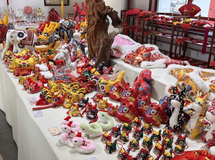 圖為馬莊香包科教文化所內的香包展品。吳東興