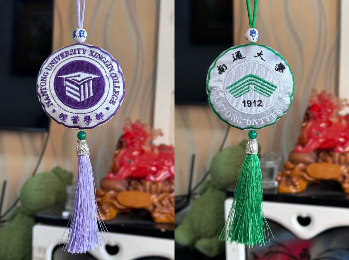 青春之力:讓非遺飄“香”萬里活動尾聲,小隊與馬莊香包工作室達成合作意向,從多種角度宣傳馬莊香包。團隊結合學院與學部徽章樣式,精心設計出創意平面樣品圖,旨在開發成為校方合作的聯名文創產品,并與制作人溝通將其轉化為實物,力求推出既經濟實惠又能吸引年輕人興趣的聯名文創商品。