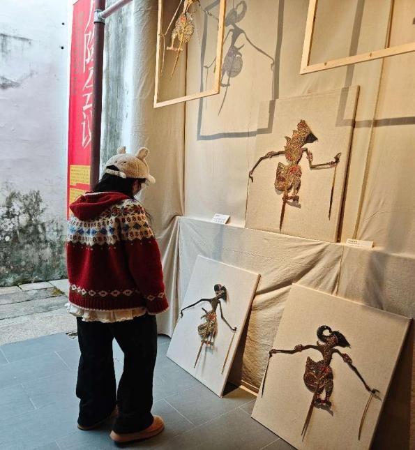 圖4 實(shí)踐隊(duì)成員參觀山東濟(jì)南向群皮影社 2月16日,除了國(guó)內(nèi)的皮影文化探尋,團(tuán)隊(duì)成員還前往福建福州上下杭?xì)v史文化街區(qū),參觀了印尼-萬(wàn)隆現(xiàn)實(shí)快閃店,并觀看了印尼皮影表演。通過(guò)與印尼皮影文化的對(duì)比,團(tuán)隊(duì)成員更加深刻地認(rèn)識(shí)到中國(guó)皮影文化的獨(dú)特魅力與全球影響力。