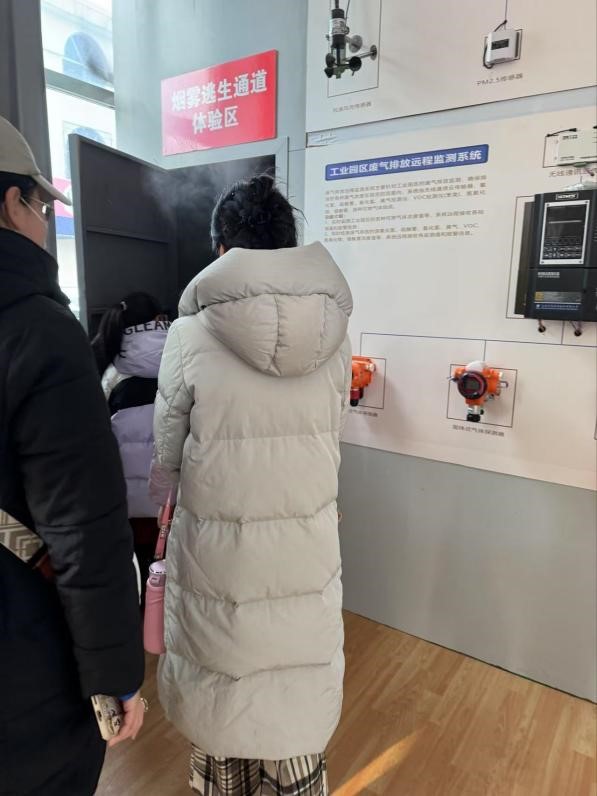 在模擬火災逃生演練中,孩子們運用濕毛巾捂住口鼻,彎腰低姿沿逃生通道有序撤離。志愿者全程引導,強調“不推擠、選對路、避電梯”等要點,幫助孩子們將知識轉化為應急能力。