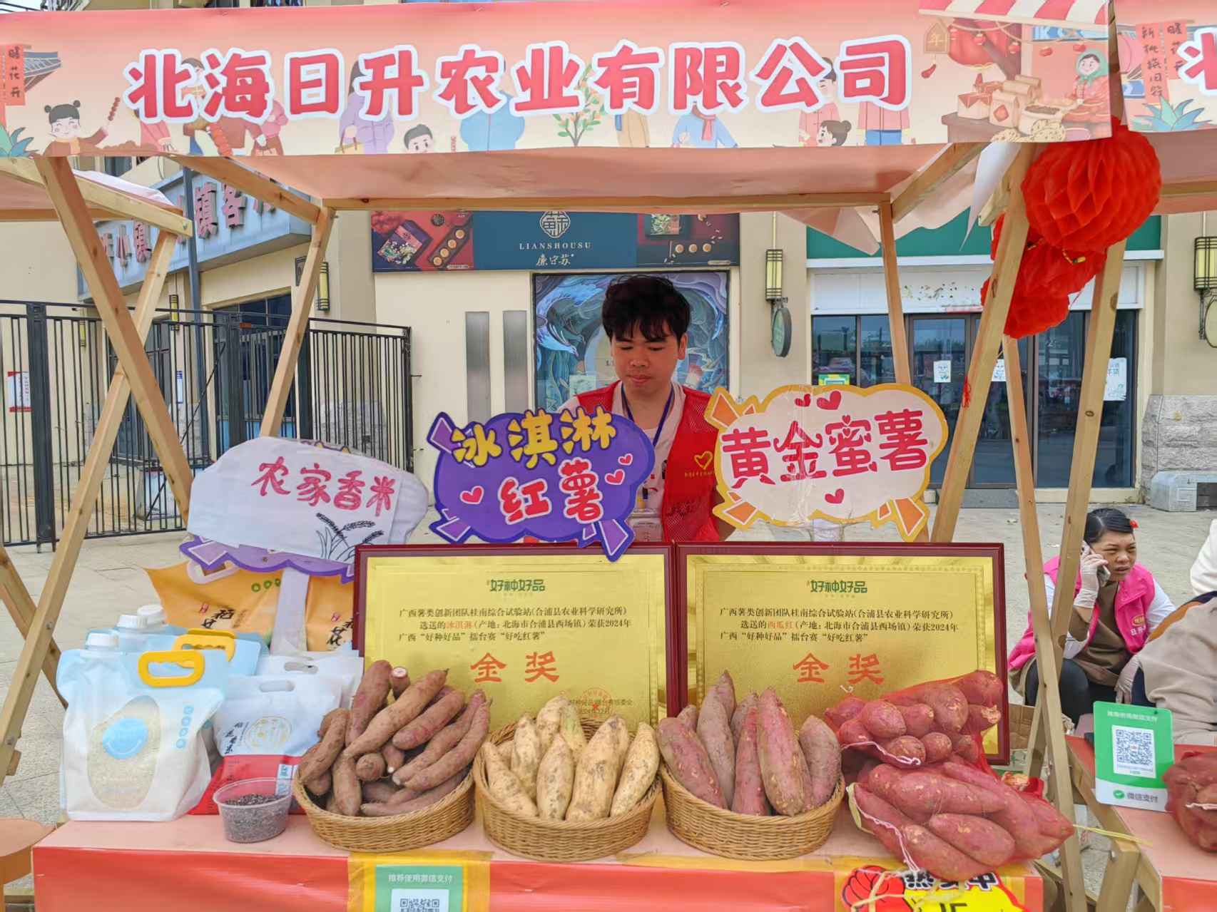 本次海絲非遺大集市游客眾多,許多攤位工作人員短缺,易造成秩序的混亂,實踐隊員主動請纓,來到北海日升農業有限公司展位幫助工作人員進行銷售。