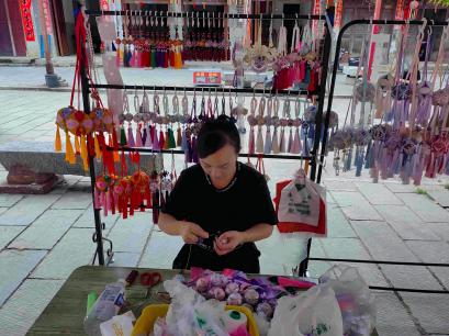 圖為實(shí)踐團(tuán)成員拍攝的手工藝人制作繡球