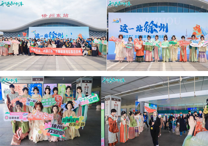 “有朋自遠方來,不亦樂乎!”在“水韻江蘇”主題旅游列車活動中,灼灼風華服務隊的志愿者們化身古風使者,以漢服禮儀為徐州文旅代言。高鐵站臺間,衣袂飄飄的志愿者們向旅客遞上特色書簽、香囊,用盈盈笑意傳遞楚漢故里的熱情。不少游客駐足合影,驚嘆于漢服華裳的典雅之美。這場古今交融的迎賓儀式,不僅成為車站里亮麗的風景線,更讓八方來客在第一時間感受到徐州“國潮漢風”的城市名片。