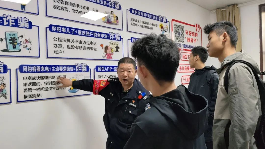 到達派出所后,民警熱情引導小組成員參觀所內反詐宣傳區。墻面上,“網購客服理賠詐騙”“陌生APP投資理財詐騙”等主題海報生動展示詐騙手段,民警結合案例,逐一剖析,并介紹道:“公檢法機關絕不會通過電話要求資金審查,遇到‘安全賬戶’說辭必定是詐騙。”清晰的講解讓小組成員對電信詐騙分子套路有了具象認知。在互動環節中,針對小組成員提出的“如何辨別兼職詐騙”疑問,民警以“兼職墊資詐騙”為例,揭露詐騙分子“小額返利誘惑—誘導大額投入”的慣用手法,強調“不墊付資金、不隨意轉賬”的應對原則。此外,民警現場演示“國家反詐中心APP”的安裝與使用,詳細介紹預警、舉報等功能,確保成員掌握實用反詐工具。在典型案例分享環節中,民警向小組成員深入剖析近期轄區詐騙事件。從受害人因“貪利心理”落入陷阱,到詐騙分子利用話術操控情緒等層層拆解。民警的講解讓小組成員深刻認識到:反詐不僅需識別技巧,更要警惕“貪小便宜”“慌亂輕信”等心理漏洞。一名小組成員說到:“這次學習像一場‘反詐清醒課’,以后遇到類似情況,一定會多留個心眼。”
