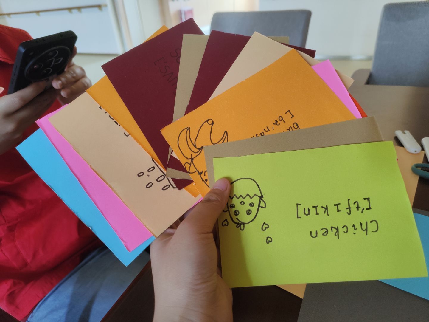 圖為志愿者制作的英語小卡。 方曉鳳 供圖