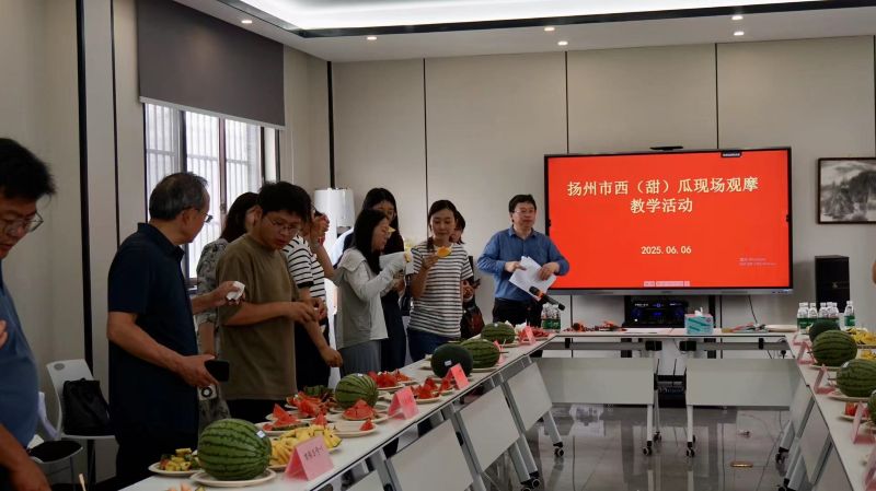 圖為"揚州市西(甜)瓜現場觀摩教學活動"西瓜品鑒環(huán)節(jié)。薛粲雨攝