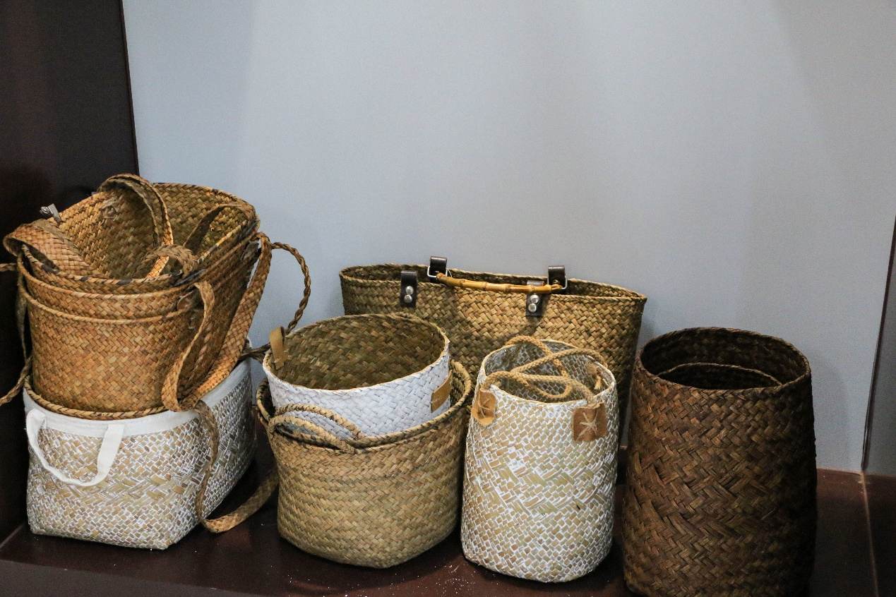 圖為蒲草制品部分展示 陳琴芳 攝
