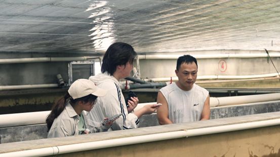 當天下午,在天辰公司會議室簡要溝通走訪目的后,負責人楊劉先生便帶領隊員前往育苗車間。途中,他詳細介紹了車間的“核心設施”——蓄水池、培育池、孵化池,三者相互配合,構成魚苗生長的完整“生命鏈條”。隨著楊劉生動地講解,實踐隊隊員們對現代化魚苗養殖體系有了初步認識。