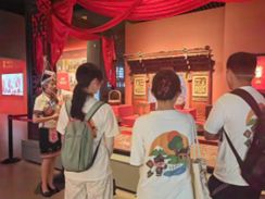 實踐隊隊員們在講解員的帶領下,有序進入畬族博物館參觀。一踏入館內,模擬的畬族村寨、農田、作坊等場景便映入眼簾。這些高度還原的場景,配合逼真的音效和光影效果,讓隊員們仿佛瞬間穿越時空,親身體驗到了畬族人民的生活方式和勞動場景。在參觀過程中,講解員詳細地為隊員們介紹了畬族的起源發展,以及畬族歌舞、語言和服飾等方面的知識。從畬族古老的傳說故事到獨特的歌舞表演形式,從具有民族特色的語言特點到精美絕倫的服飾文化,講解員生動的講述,將畬族豐富多彩的非遺文化故事一一展現在隊員們面前。