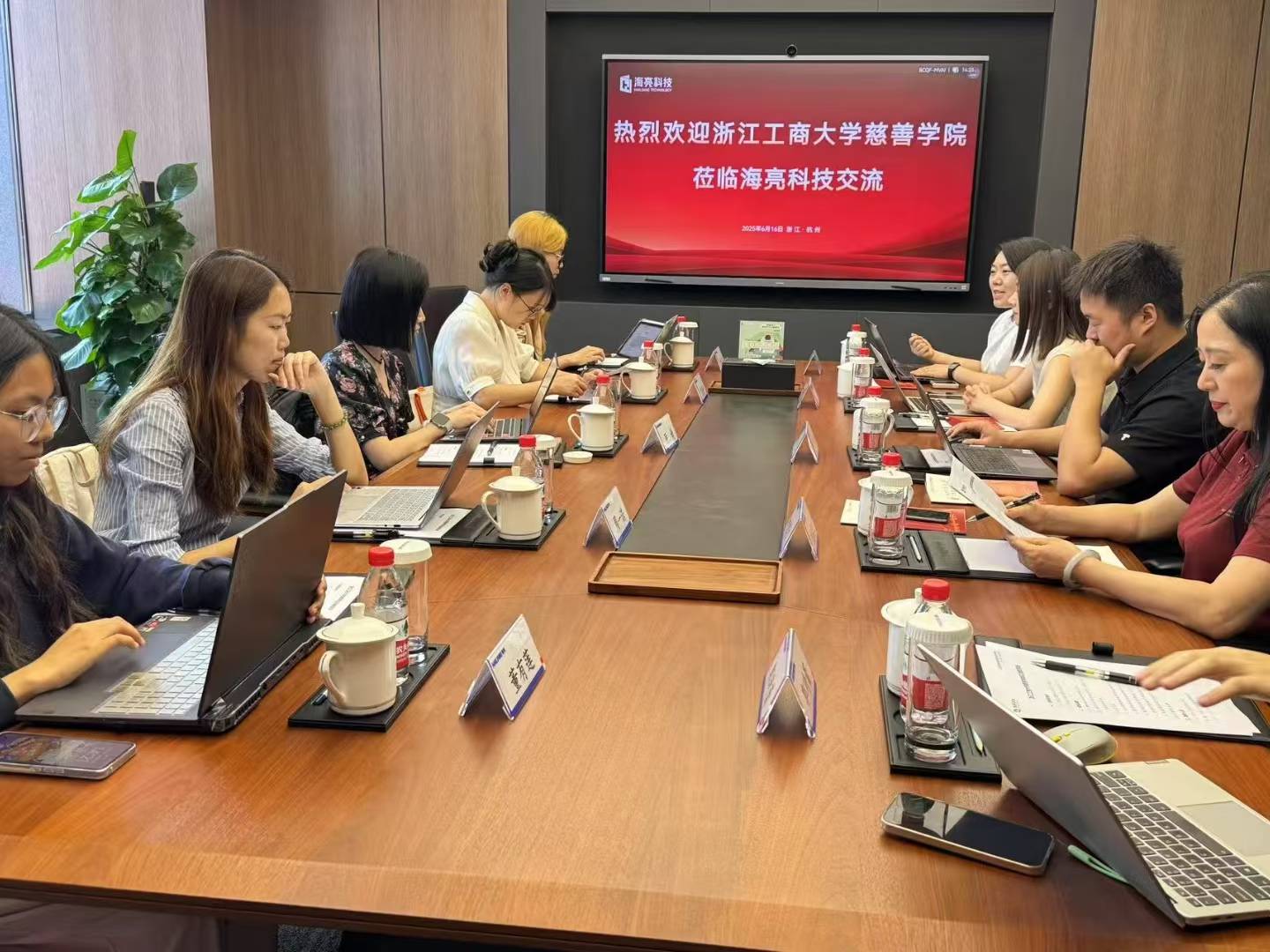6月16日,浙江工商大學公共管理學院(英賢慈善學院)“智在技術,浙在善心”實踐團隊深入杭州市濱江區海亮科研大廈,了解海亮教育科技集團(以下簡稱“海亮)借助數智化技術推動“商業向善”的戰略轉型與創新實踐。