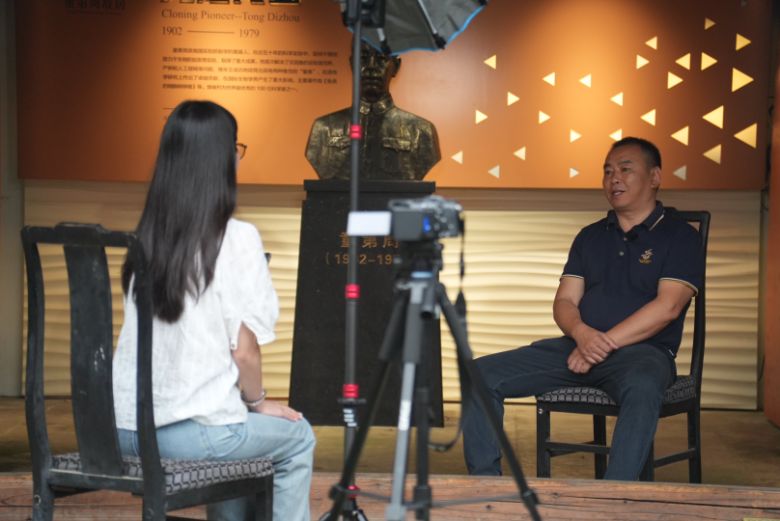 此外,實(shí)踐團(tuán)隊(duì)利用專業(yè)所學(xué),在故居堂前搭建了訪談場地,對鄞州區(qū)塘溪鎮(zhèn)童村書記童億儉及童第周故居管理員童剛毅進(jìn)行采訪,深入了解了童第周先生的生平故事、教育理念及科研成就。
