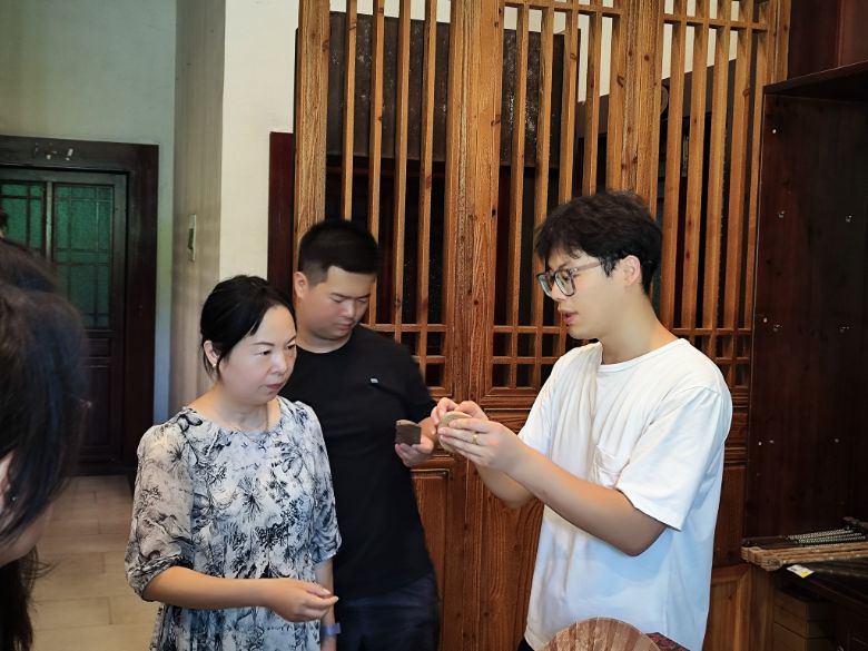 交流環節后,團隊重點實地考察了根宮佛國的互動實踐課堂。在工作人員引導下,師生們參與了根雕制作體驗環節,從觀察、學習到動手嘗試,并對方經理進行訪談。方經理提出:"研學客群年齡多為未成年(3-16歲),體驗熱情高,但可接受難度較低,成年人占比低導致消費力不足﹣﹣急需豐富業態使各個年齡段都可以積極參與,這一反饋為團隊思考業態升級提供了重要的切入點。