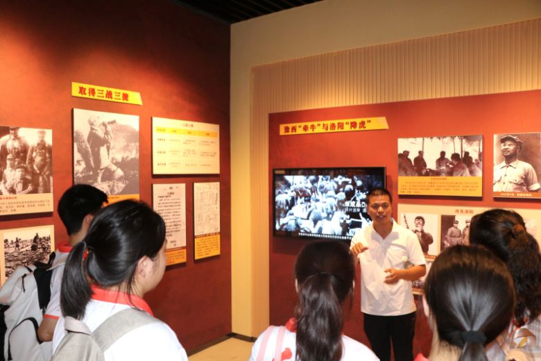 故居展板系統(tǒng)勾勒了陳賡大將波瀾壯闊的一生。“少年壯志”展區(qū)揭示:1903年誕生于此的陳賡,1915年入東山高等小學(xué)堂接觸新思想,萌發(fā)救國志。1916年,他“高小未卒業(yè),即毅然投軍”(陳賡《我的自傳》)。展板“投筆從戎”記錄了他目睹軍閥混戰(zhàn)“民則十室十空”慘狀后對舊軍隊(duì)的失望,成為追尋真理的伏筆。在“堅(jiān)定信仰”單元,成員們肅立重溫:1922年在長沙加入社會主義青年團(tuán),同年12月入黨,從此“把自己的一切交給了黨和人民的偉大事業(yè)”。“第一軍有黨,第二軍有我”的誓言,振聾發(fā)聵。“能文能武的‘鐵帽子紅軍團(tuán)’團(tuán)長”、“驍勇戰(zhàn)將威名赫赫”等展板,生動展現(xiàn)他在鄂豫皖蘇區(qū)、長征(巧渡烏江、四渡赤水)及隱蔽戰(zhàn)線的赫赫戰(zhàn)功與“絕對忠誠、堅(jiān)持真理、敢于斗爭、善于斗爭”的精神。展柜中黃埔軍校時(shí)期(1924年奉黨指示考入)的歷史記載,特別是他與蔣介石面對面斗爭、公開共產(chǎn)黨員身份的史料,彰顯其無比堅(jiān)定的政治立場。