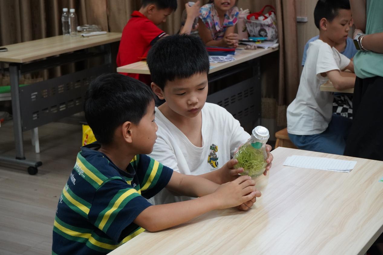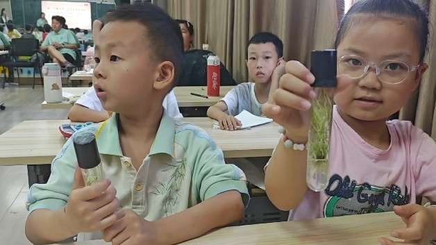 在孩子們對竹子組織培養的奧秘充滿驚嘆時,實踐團成員又拋出新的驚喜:“你們知道嗎?竹子也有自己的‘試管嬰兒’!”隨著這一句充滿懸念的話語,拿出試管嬰兒的模型樣品,讓小朋友們近距離觀看。“我知道!這也是無性繁殖!”“是不是和竹子組培一樣,都能快速生出好多‘寶寶’?”小朋友們高舉的小手如雨后春筍般林立,爭先恐后地搶答,眼中閃爍著求知的光芒。
