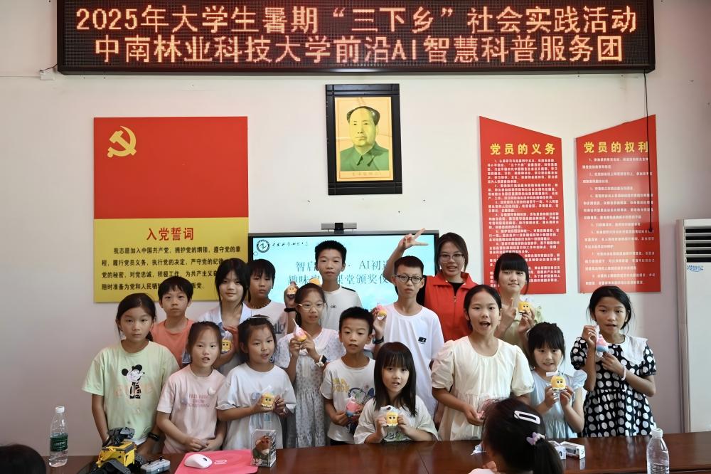 (文/楊澤成 林霄 圖/楊飛揚 田宗平)7月4日下午,中南林業科技大學前沿AI智慧科普服務團走進婁底市雙峰縣甘棠鎮甘棠村村委會,舉辦了以“智啟童蒙·AI初逢”為主題的AI知識趣味競賽。此次活動吸引了眾多中小學生參與,為當地青少年開啟人工智能探索之旅,成為暑期“三下鄉”實踐活動的精彩注腳。