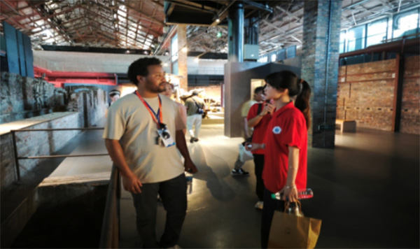 團隊成員為國際友人講述紅色文化故事 謝冰瑩 攝