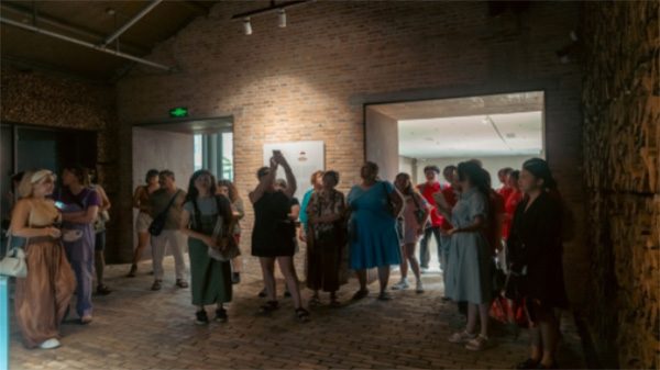 工業遺脈,讀懂建筑里的時代記憶 穿過“工業火焰走廊”,銹跡斑斑的鋼鐵骨架與粗糲的紅磚墻體,奏響一曲震撼的工業視覺交響。這座由宇宙瓷廠涅槃重生的博物館,完整保留了獨特的回廊式工業肌理——鋸齒狀天窗曾是車間流淌的光之河,斑駁的運輸軌道則刻印著瓷器遠銷海外的輝煌足跡。目光所及,工人生活的印記靜靜陳列:一雙雙磨穿底的草鞋、一盞盞熏黑的煤油燈、頁角泛黃的職工手冊,無聲講述著老一輩陶瓷人篳路藍縷的奮斗歲月。團隊成員黃菁駐足凝視墻上的老照片,深情講述:“這些工具不僅是物件,更是新中國陶瓷工業從無到有、披荊斬棘的‘親歷者’。”沉默的回廊仿佛在訴說,每一處斑駁的細節都在訴說堅韌與傳承。在團隊成員富有穿透力的敘述中,國際友人凝神傾聽,神情肅然起敬,深深為這份厚重的歷史所動容。