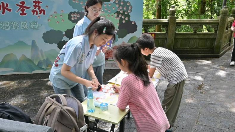 移步至景區(qū)內(nèi)充滿文化氣息的長廊,活動首站設(shè)在充滿文化氣息的長廊。千年清水巖的晨鐘暮鼓,遇見青春學(xué)子的澎湃創(chuàng)意,碰撞出智慧的火花。參與者們挑戰(zhàn)解答清水巖歷史典故、蓬萊荔枝品種、荔枝營養(yǎng)價值等趣味題目。問答之間,智慧的火花在“荔”問中迸濺。大家躍躍欲試,爭相挑戰(zhàn)答題,答對2題即可獲得首枚活動印章。這道“知識關(guān)”不僅寓教于樂,讓參與者在輕松氛圍中深入領(lǐng)略家鄉(xiāng)的山水人文與特色物產(chǎn),更悄然點燃了深藏心底的本土文化自豪。