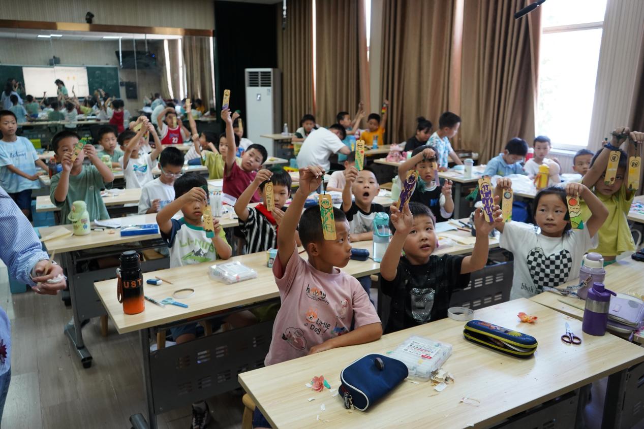 為了將竹的韻味融入日常學(xué)習(xí)生活,課程還特別安排了“竹書簽”制作環(huán)節(jié)。孩子們利用切割好的刨切微薄竹片作為書簽胚體,發(fā)揮天馬行空的想象,用畫筆、顏料或彩筆在上面精心繪制圖案、書寫勵(lì)志格言或描繪家鄉(xiāng)山水。一枚枚承載著個(gè)性創(chuàng)意和書香氣息的竹書簽就此誕生。