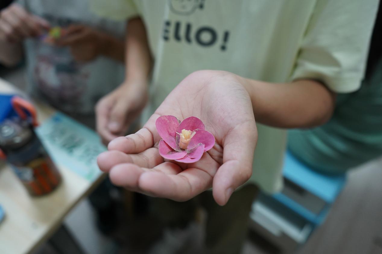 課上,實(shí)踐團(tuán)成員手把手教孩子們將一張小竹紙做成了一片片色彩鮮艷的花瓣與形態(tài)多樣的花蕊。從一張小竹條到一朵竹制“永生花”,孩子們盡情地?fù)]灑著自己的創(chuàng)造力與想象力。