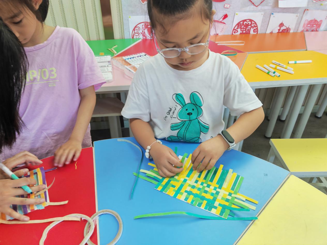 在感受了平面造型的樂趣后,課程進(jìn)入了更具挑戰(zhàn)性的“竹編畫”環(huán)節(jié)。成員們向孩子們展示了基礎(chǔ)的竹編技法,并提供了預(yù)先處理好的細(xì)竹篾條。孩子們在實(shí)踐團(tuán)成員的耐心指導(dǎo)下,嘗試著將篾條經(jīng)緯交錯(cuò),或模仿傳統(tǒng)紋樣,或自由創(chuàng)作,編織出充滿童趣的小幅竹編畫作。雖然手法略顯生澀,但專注的神情和完成作品后的喜悅溢于言表。
