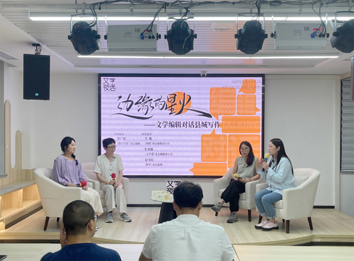 文學夜話:縣城寫作者對話名刊編輯 當晚,實踐隊沉浸式參與了眾創空間第25期“文學夜話”——“邊緣的星火:文學編輯對話縣城寫作”?!段骱冯s志編輯李璐、《文學港》編輯朱夏楠、《野草》編輯趙斐虹三位資深編輯,與眾多景寧本土文學愛好者、寫作者圍爐夜話。“縣城蘊藏著未被充分書寫的真實中國。”編輯們分享了前沿的文學觀察?,F場氣氛熱烈,多位景寧寫作者踴躍提問,聚焦創作困惑與投稿渠道。三位編輯耐心解答,從選題方向到投稿技巧,為扎根基層的創作者提供了寶貴的“投稿指南”和創作激勵。