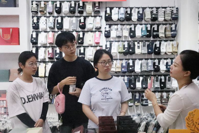 實(shí)踐團(tuán)成員走訪襪業(yè)城各商戶