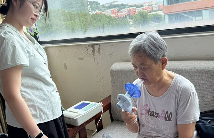 測試數據帶來驚喜時刻。當隊員興奮地告訴王奶奶“您這次的數據比上次更好了”時,老人開懷大笑,臉上洋溢著幸福與自豪,隊員們也由衷為老人身體狀況的改善感到欣喜。