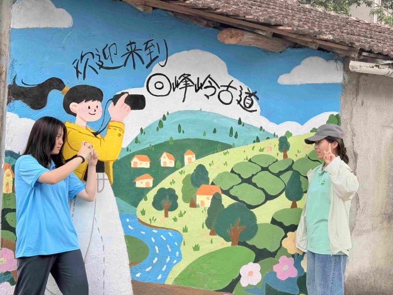 困境催生智慧應變。面對色差,學生們化身"人肉調色盤",蹲在墻角反復調試顏料;針對凹凸墻面,改用多層覆蓋技法,將缺陷轉化為特殊肌理;空間狹窄處實施"車輪戰術",三批隊員輪流接力。更讓隊員們動容的是村民自發的支持——七十歲的王大爺搬來家中木梯,民宿老板娘送來整箱礦泉水,"這些帶著體溫的幫助,讓顏料都變得更有溫度。"隊員小宋擦拭著濺滿丙烯的衣角說道。