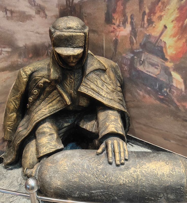 (圖為李云龍拆定時炸彈的雕塑 來源:鐵脈薪傳宣傳部)