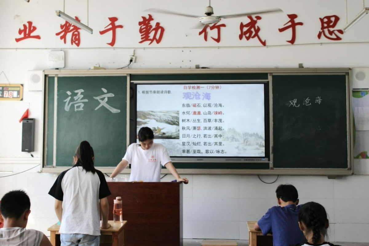 招生宣講完畢后,教學組相繼開啟趣味課堂。繪畫涂色課充滿童趣與創想。英語課互動教學激發孩子們的學習熱情。語文課讓學生感受詩詞雄渾意境。這些趣味課堂,以多元形式拓寬鄉村孩子知識視野,在激發學習興趣的同時,借文化課程厚植人文底蘊,用青春力量為鄉村教育添彩,助力文化傳承與振興 。