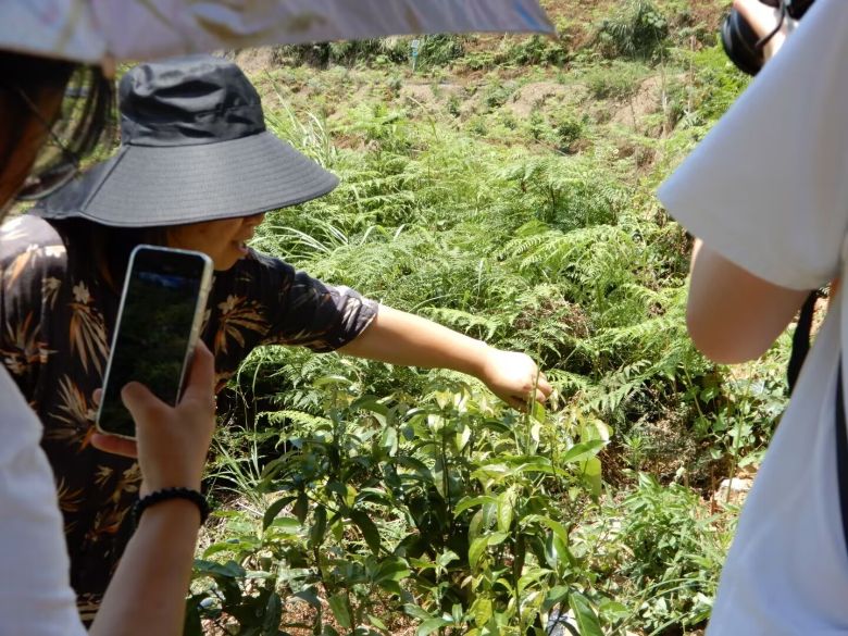 在“三間田”藝術村落的游覽調研告一段落,小分隊成員轉戰“弄泉齋”特色民宿。烈陽熱浪抵不過老板姐姐如火的熱情。在她的帶領下,小分隊成員參觀了山水田園中的“弄泉齋”特色民宿和當地的甜茶標準化種植園,了解了當地民宿度假、甜茶采摘等特色旅游產業的發展狀況,同時,還親身參與到甜茶產業中,認識甜茶、采摘甜茶、品嘗甜茶,對當地甜茶種植業及其產業鏈有了更加清晰的認識。短暫歇息后,采訪小組與“弄泉齋”經營者展開交流,老板姐姐“以夢為馬”的創業動機給小分隊成員留下深刻印象。談及創業過程中的艱辛,老板姐姐以輕松愉快的語調為小分隊成員講述了她和丈夫的創業故事,強調創業者自身吃苦耐勞的品格和當地政府的支持對鄉村創業意義重大。