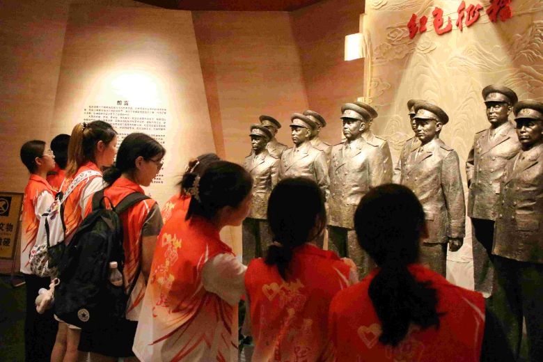 午后,滿天星實(shí)踐隊(duì)整裝待發(fā),前往陽(yáng)新博物館。踏入歷史展廳,“鄂東明珠,潮起陽(yáng)新”的城市圖景與厚重歷史交織。千年興國(guó)的底蘊(yùn)、半壁山之戰(zhàn)的烽火、紅色記憶與民俗的傳承交融鋪展開(kāi)來(lái)。從古老秤具到布貼藝術(shù),從革命群像到非遺展品...陽(yáng)新,這座承載著厚重歷史底蘊(yùn)的文明古城,宛如一本厚重的史書(shū),每一頁(yè)都寫滿了故事。隊(duì)員們觸摸著歷史紋理,讀懂這土地的厚重堅(jiān)韌,讓青春與文化傳承同頻共振。