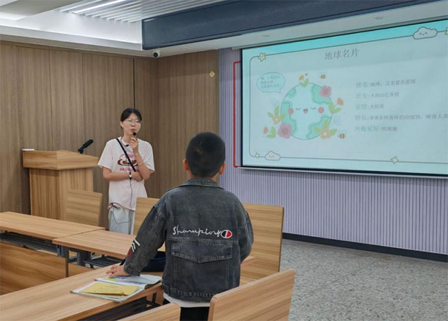 本次“紫色探索”課以地球環境保護為主題。志愿者老師以一段震撼人心的地球生態變化紀錄片開場,冰川消融、森林銳減等畫面引發了孩子們的強烈震撼。緊接著,老師通過通俗易懂的語言,向孩子們闡述了全球變暖、水資源污染、生物多樣性減少等環境問題產生的原因和危害。此外,老師還組織孩子們分組討論“我為環保獻一策”,大家積極發言,提出了諸如“制作環保宣傳海報”“開展社區環保志愿活動”等眾多富有創意的想法。