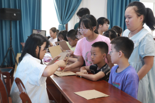(上圖為“微光致遠”團隊成員在向小朋友們介紹計量的相關知識)