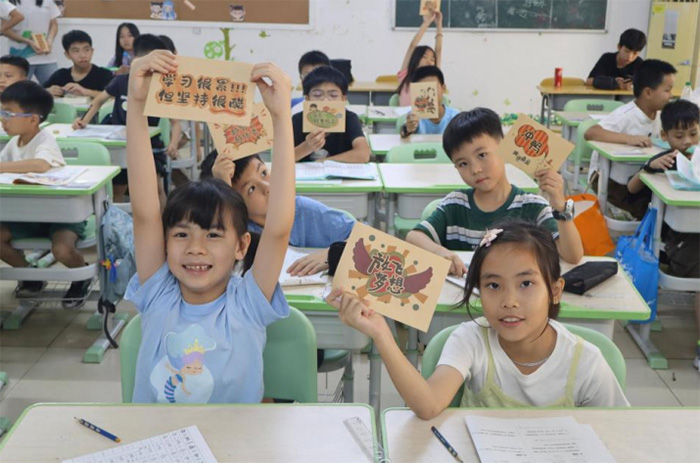“時光膠囊”藏心愿,少年與未來對話 開幕式后,“時光膠囊”活動率先登場。隊員們鋪開畫紙、遞上彩筆,引導孩子們回憶成長中的珍貴瞬間——第一次學會騎車的喜悅、考試進步的自豪,再寫下對未來的期待:“想畫出全村的樣子”“要學會做漆扇送給奶奶”。孩子們將這些文字與圖畫折成紙船、疊成星星,小心翼翼封入貼滿彩紙的“時光膠囊”。“這是給暑期三下鄉(xiāng)結(jié)束給自己的約定!”現(xiàn)場滿是對成長的憧憬。