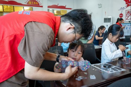在動手實踐環(huán)節(jié),每個小朋友都領到了一套皮影材料。實踐團成員分布在孩子們中間,耐心指導他們進行組裝。孩子們在實踐團成員的幫助下,一步步將零散的部件組合成一個個可愛的皮影,并為自己的作品命名。過程中,孩子們組裝時不時會提出各種問題,實踐團成員都一一細心解答,整個現(xiàn)場相當熱鬧。