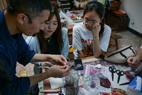 (圖為吳淵老師指導團隊成員進行紙影藝術創作)