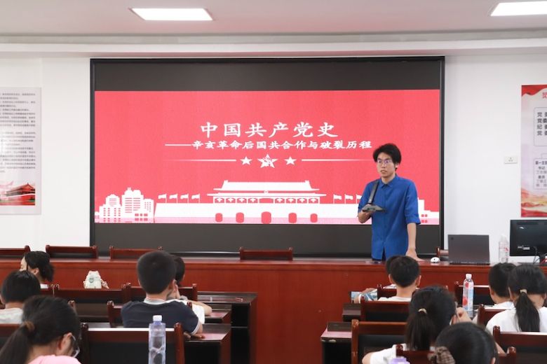 今天的最后一堂課,方博老師用革命動畫帶小朋友們穿越歷史長河,走進了中國共產黨的崢嶸歲月。課程前后回顧了中國共產黨從國共合作到破裂經歷的一系列重要事件,引導孩子們理解“槍桿子里出政權”的歷史必然,同時也讓他們懂得革命道路的曲折性。