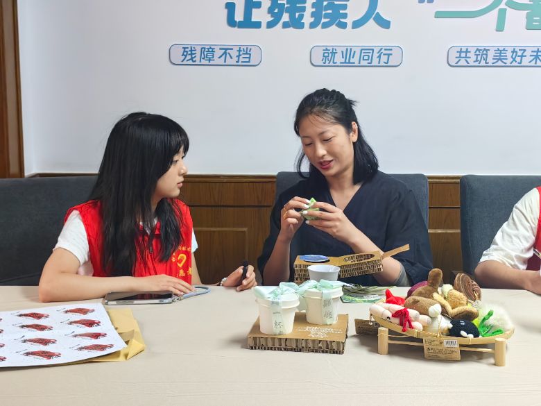 “殘疾人之家是第一道港灣,真正走向社會(huì)還需專業(yè)力量。”善達(dá)未來(lái)助殘服務(wù)中心正搭建就業(yè)轉(zhuǎn)化橋梁。面對(duì)肢體障礙、聽(tīng)障、心智障礙等多元群體,善達(dá)未來(lái)摸索出適配路徑:為聽(tīng)障設(shè)計(jì)師組建專屬項(xiàng)目組,由“橋梁”主管協(xié)調(diào)溝通;為外向心智障礙者開(kāi)拓市集崗位,采用“聽(tīng)障+心智障礙”融合搭檔模式。其開(kāi)發(fā)的“聊贈(zèng)一杯春”文創(chuàng)茶品,包裝附二維碼展示殘障伙伴工作場(chǎng)景,環(huán)保小包裝設(shè)計(jì)在市集廣受歡迎,讓殘障伙伴的努力被社會(huì)看見(jiàn)。負(fù)責(zé)人陳咪老師直言: